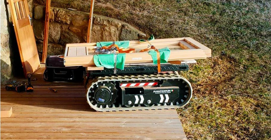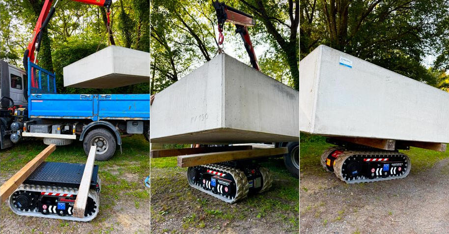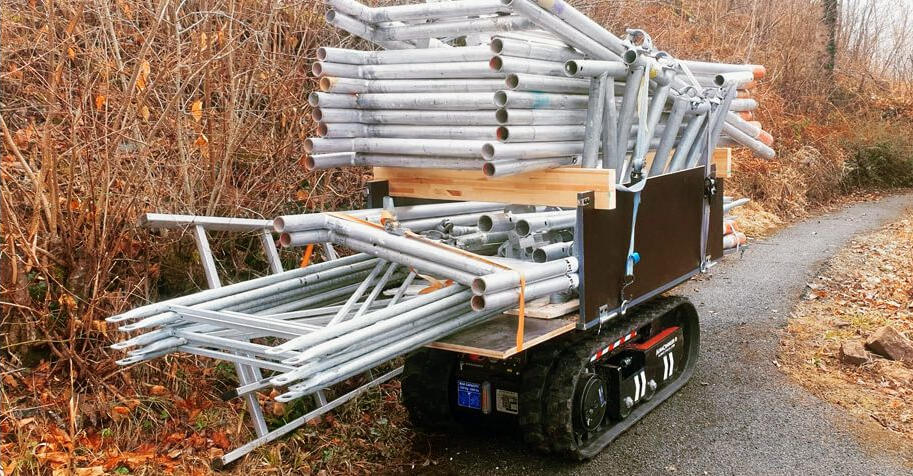 Täyssähköinen telaketjukuljetin, jonka kapasiteetti on 1500 kg